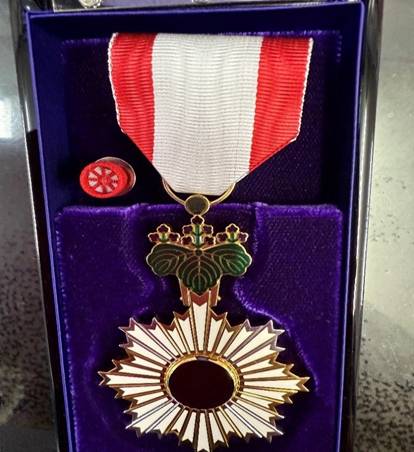 ニッショウー会館伝達式では【旭日双光章】4名の代表として壇上にて賞状・勲章を授与されました。
