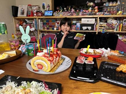 ユーの9才の誕生日(3回目)イチゴとローソクを消すのが